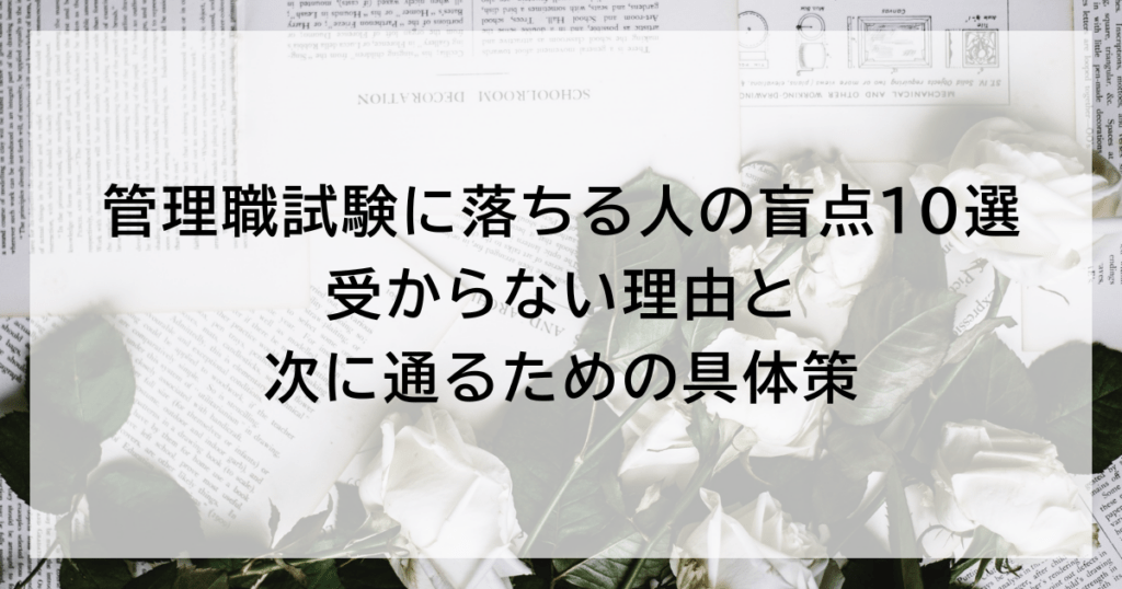 管理職試験に落ちる人が見落としがちな10の盲点を整理。評価ポイントのズレ、覚悟の伝え方、再挑戦までの具体策をわかりやすく解説します。 -
