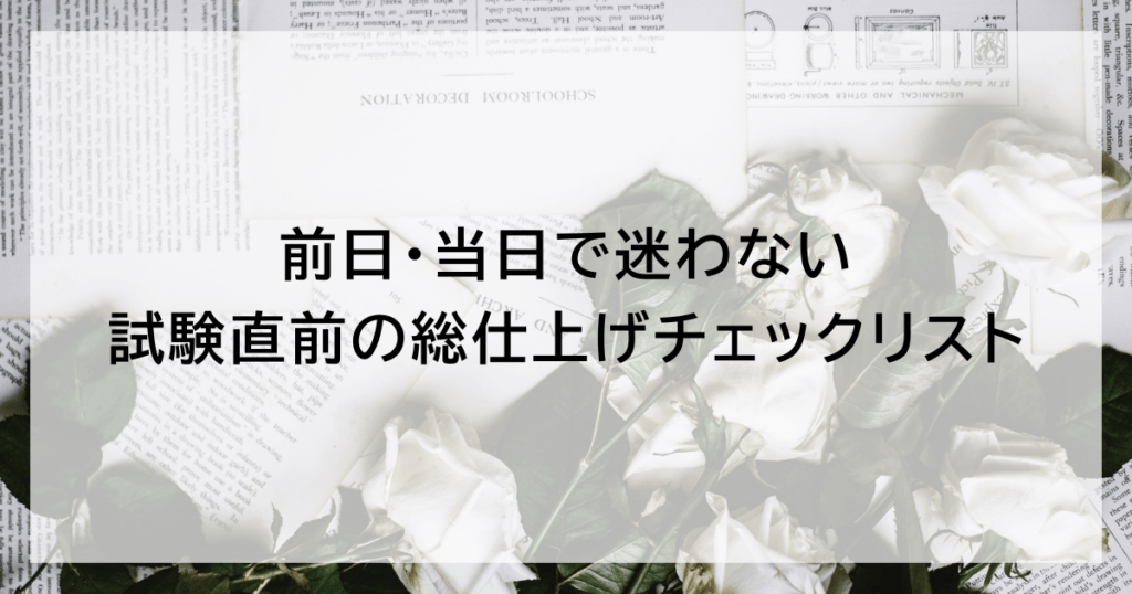 管理職試験の直前に何をすべきか迷っていませんか。前日・当日の行動と考え方を整理し、本来の力を落ち着いて出すための総仕上げチェックリストを紹介します。 -